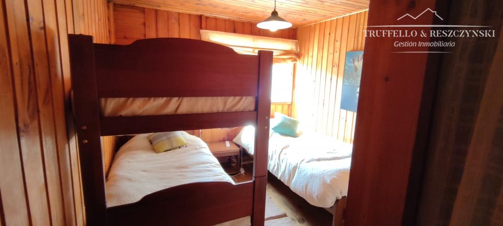 La estructura de la casa es de madera en su totalidad, posee buenas terminaciones y excelente estado de conservación. Los muros son de madera barnizada, pavimento de madera (entablado), ventanales de aluminio simple y cerámica en piso y muro de zonas húmedas.